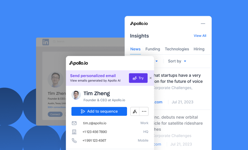 通过由 AI 提供支持的 Apollo 端到端销售解决方案,寻找买家、达成交易并观察您的