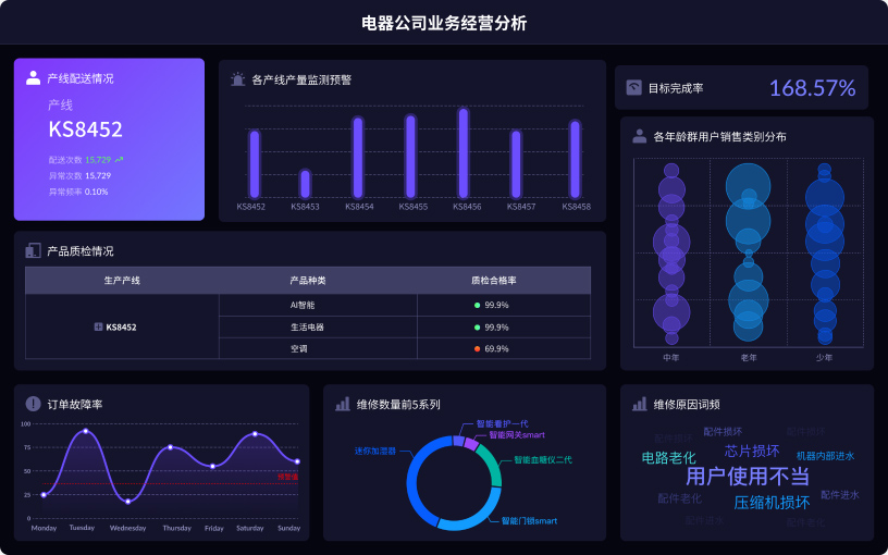 经营管理人员通过搭建数据分析驾驶舱,打通生产、销售、售后等业务域之间数据壁垒,有利于实现对企业的整体把控与决策分析,以及有助于制定企业后续的战略规划。