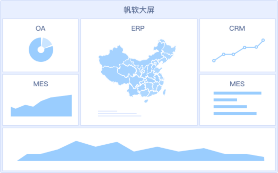 同一个大屏看板可以轻松整合 ERP/OA/MES 等多业务系统的数据,打破信息孤岛,进行综合展示分析,让决策更清晰
