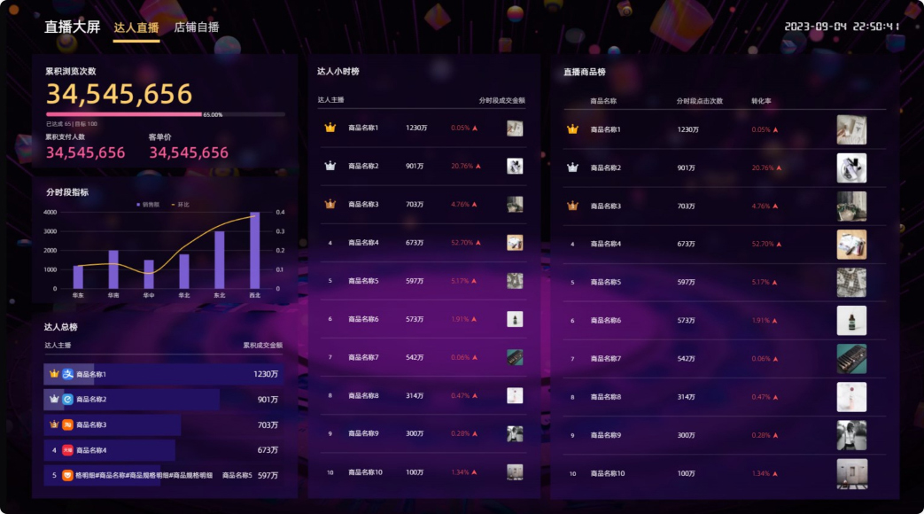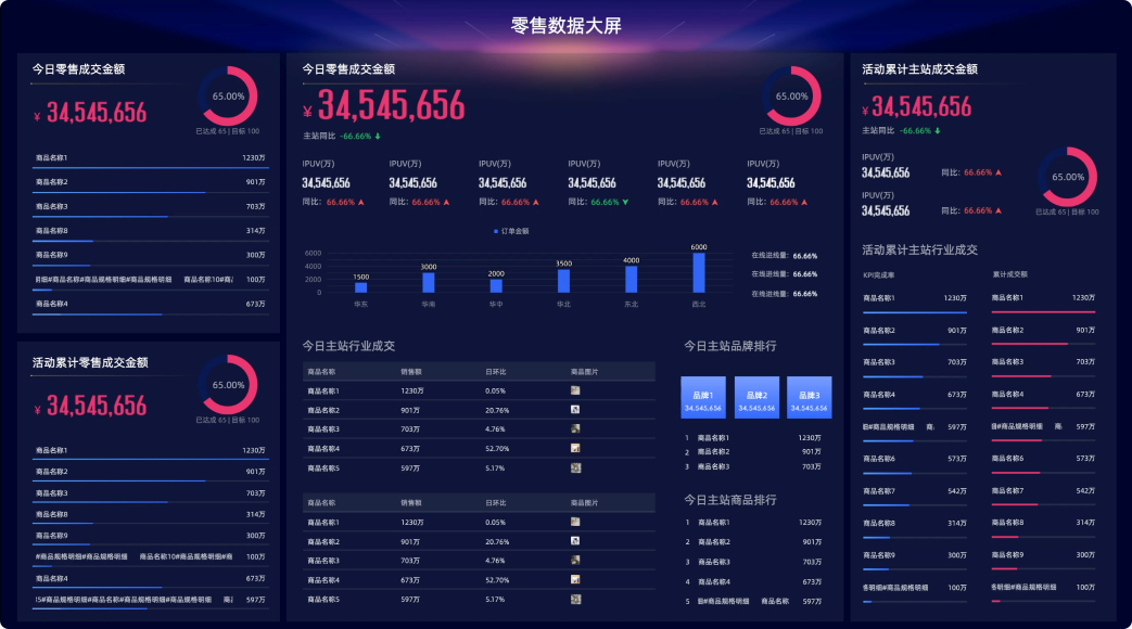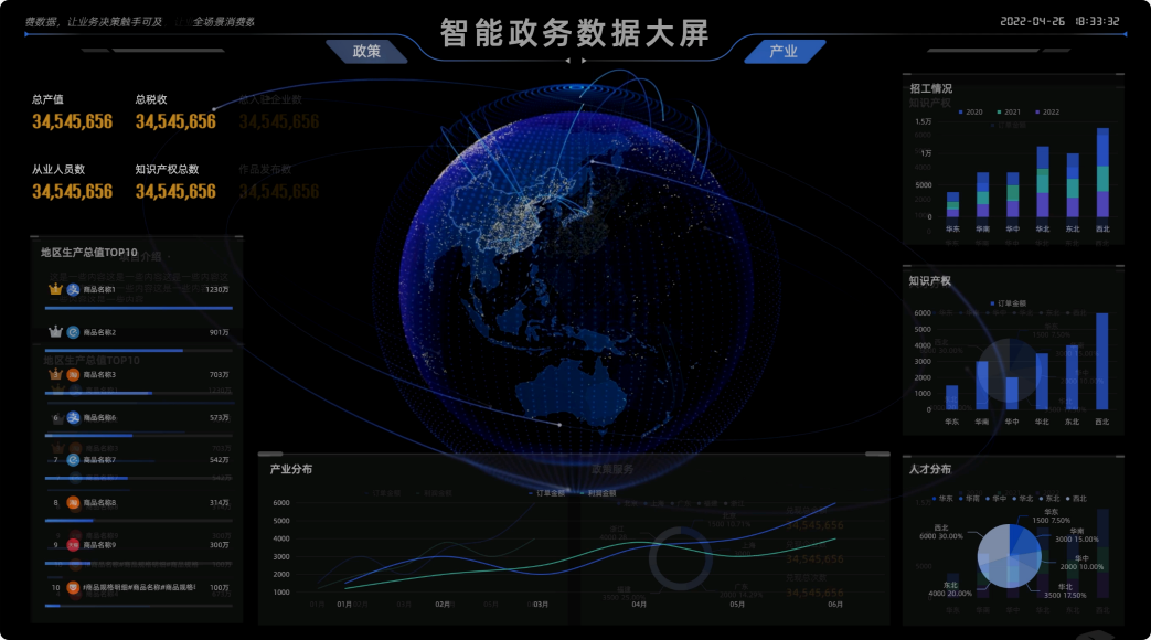 企业使用 Quick BI 将数据分析可视化和场景叙事相结合,通过外接屏幕进行展现或交互,可以实现 CXO 大盘、业务监控、以及对外PR等场景。Quick BI 全场景数据消费式 BI 平台,让数据在企业内充分流动和最大化消费。