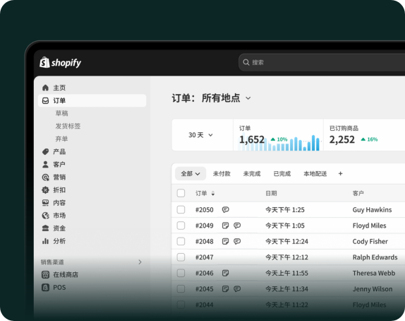从后端到店面,皆可通过全方位统一的 Shopify 后台进行控制。