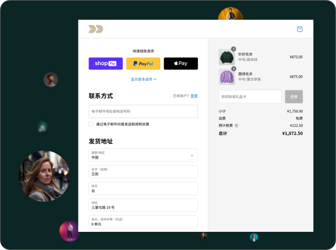 Shopify Checkout 是快速、可全面定制的结账方案, 并且经过专门优化,可帮助您提升销量。