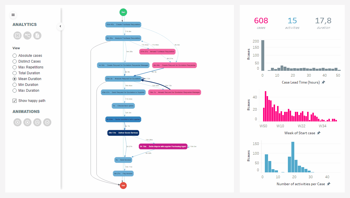 流程挖掘分析还可以用于深入了解和改进您的客户服务流程、人力资源流程、物流流程、抵押贷款流程、ICT请求等等!