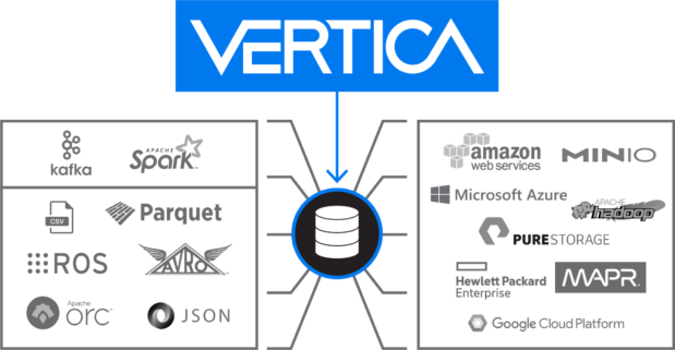 Vertica 可与您现有的数据基础设置结合使用。与最常用的硬件、公共云、开源工具、流动的编程语言和商业解决方案。